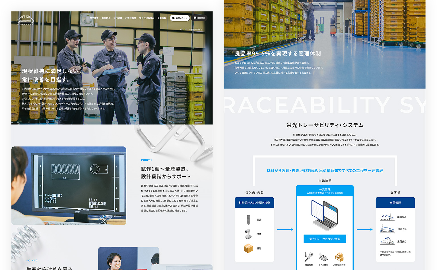 ご担当者様へのヒアリングを通じて、事業内容や加工技術、お客様に対する想いについて詳しくお話を伺いました。ライティングでは製造のこだわりやサポート力をわかりやすく伝え、現場の様子やスタッフの顔が見える写真を用いて、栄光技研様の魅力を表現しました。