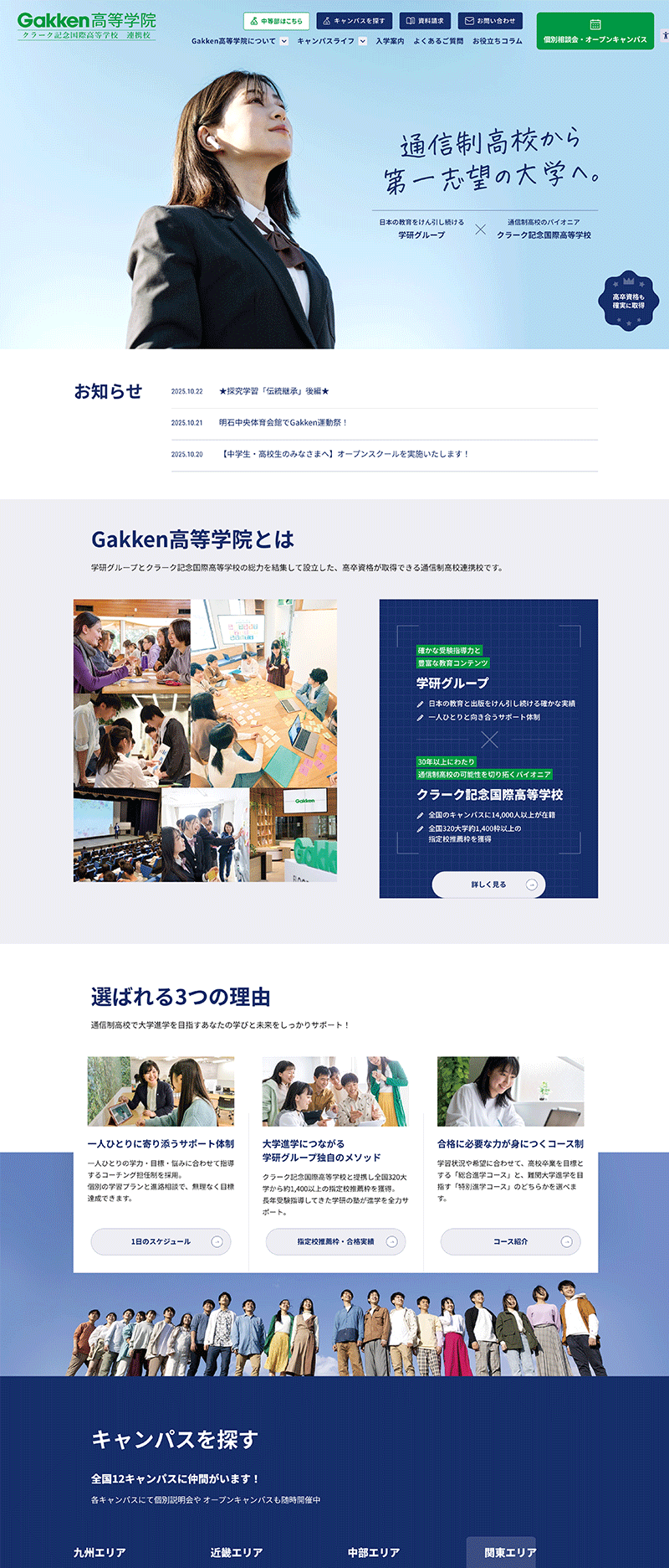大学進学を志す生徒への手厚いサポートを強みとするGakken高等学院様のイメージ強化につながるようなサイトをめざしました。サイト設計からデザイン、ライティングまでノイが一貫して担当し、クライアントから高評価をいただいています。