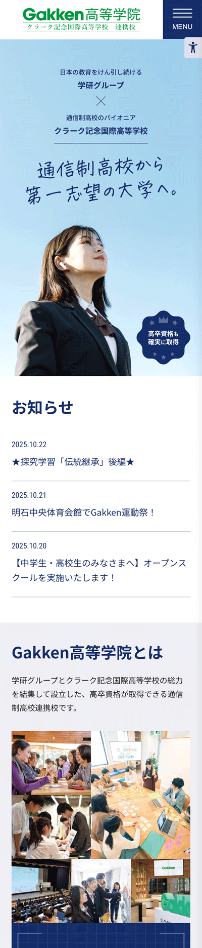 Gakken高等学院様は、学研グループとクラーク記念国際高等学校の連携によって設立された、高卒資格を取得できる通信制高校連携校(サポート校)です。Gakken高等学院様の広告展開を手掛けている担当者様からの指名で、公式Webサイトの立ち上げと広告用LPの制作をご依頼いただきました。