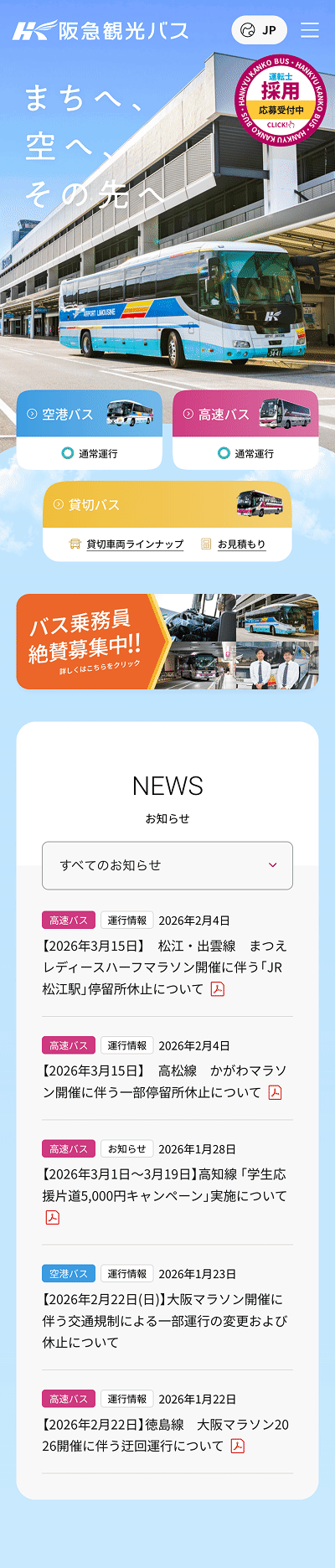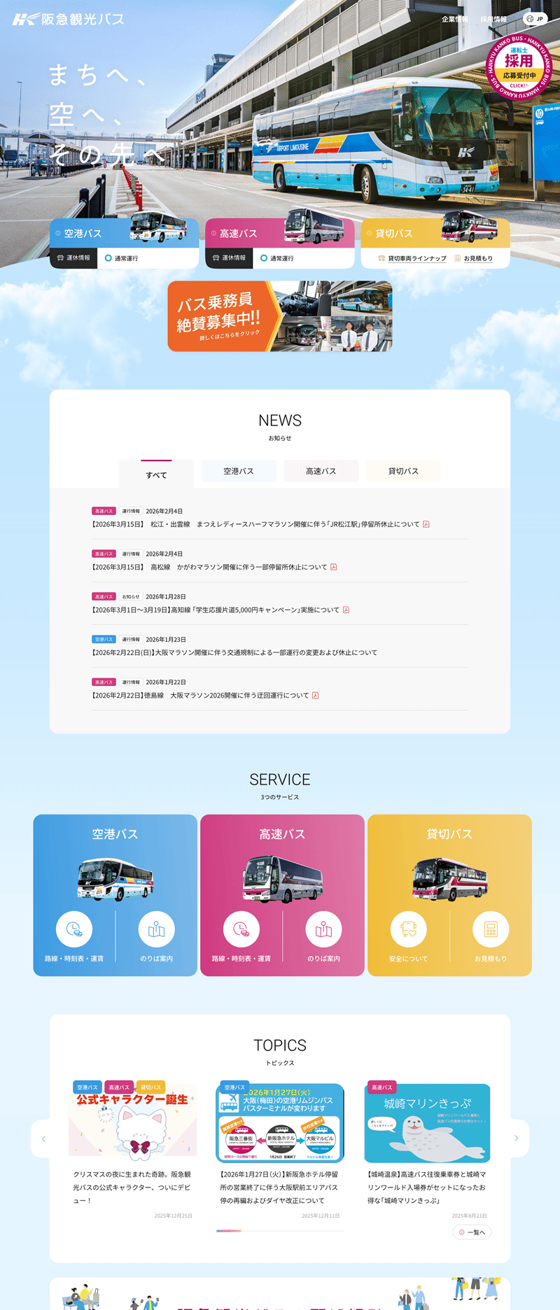 3つのバス事業を集約。社内で管理しやすいコーポレートサイトに。