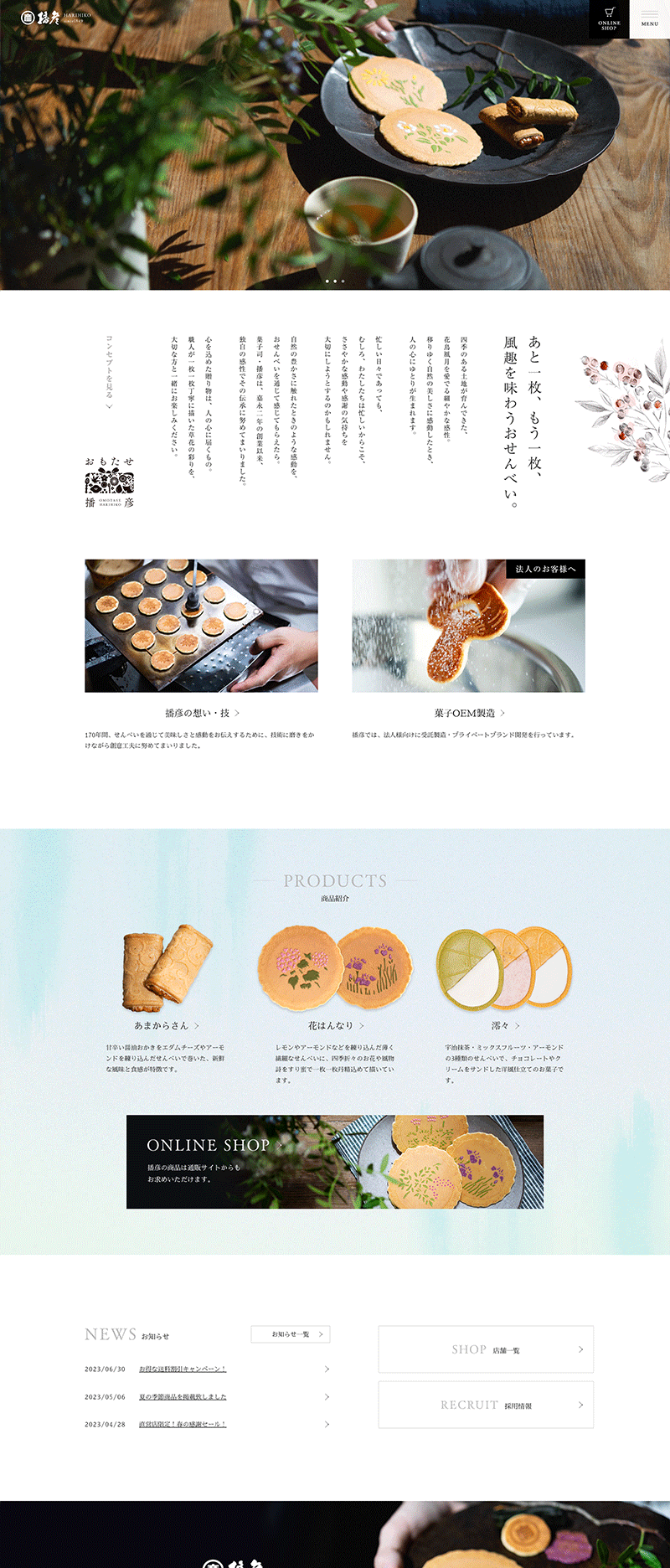 播彦(はりひこ)様は、嘉永二年(1849年)に創業された大阪の老舗菓子企業です。播彦ブランドの魅力を広く伝えることを主軸に、ECを活用した販売チャネルの拡大、実店舗への集客増加、OEM引合獲得や求人エントリー増加にもつながるような公式サイトの新規開設をご要望でした。ノイに指名発注いただけた後、すぐにお中元商戦に向けたティザーサイトを作成し、簡易的な通販対応を開始。機会損失を防ぎながら公式サイトの制作を進めました。