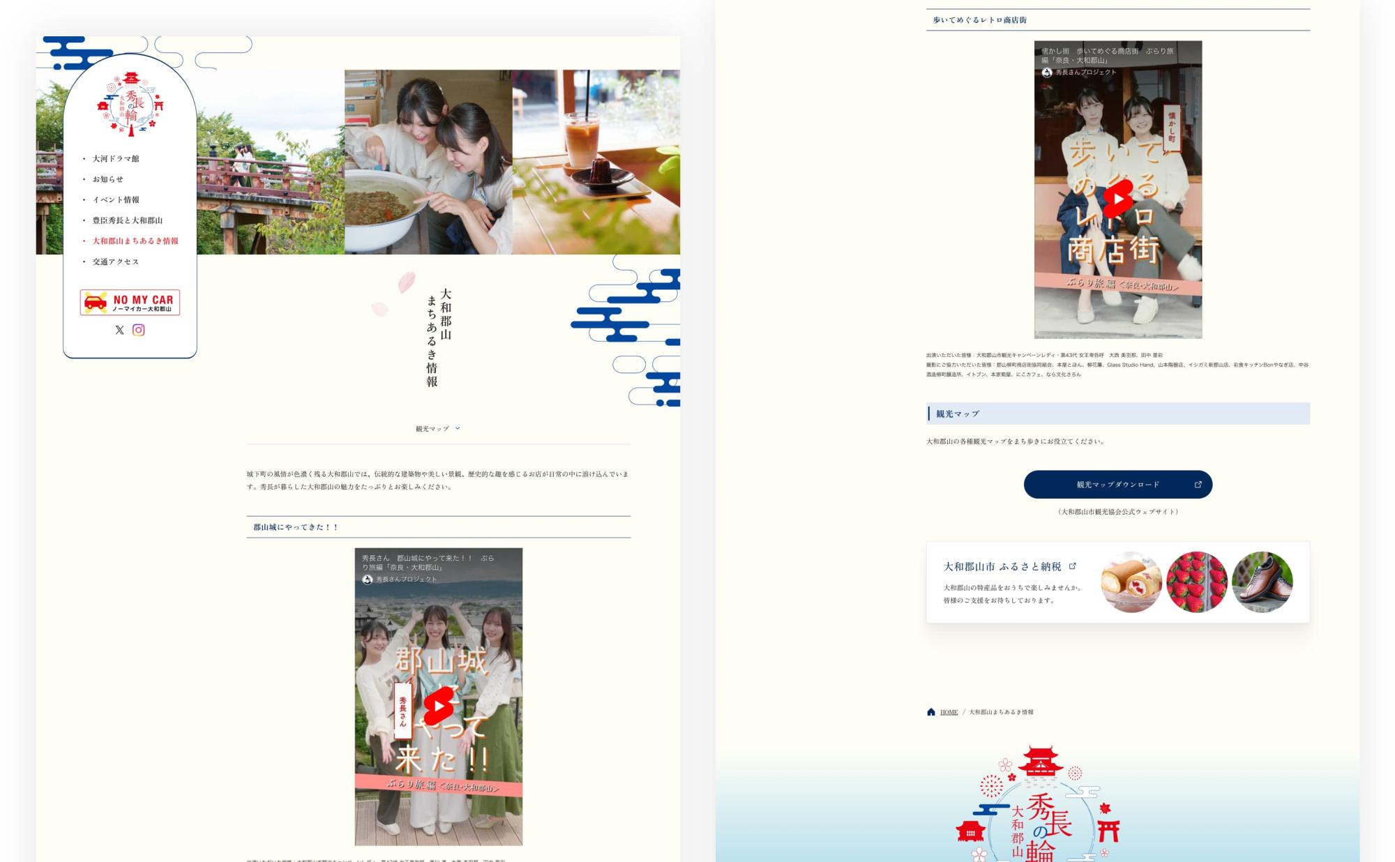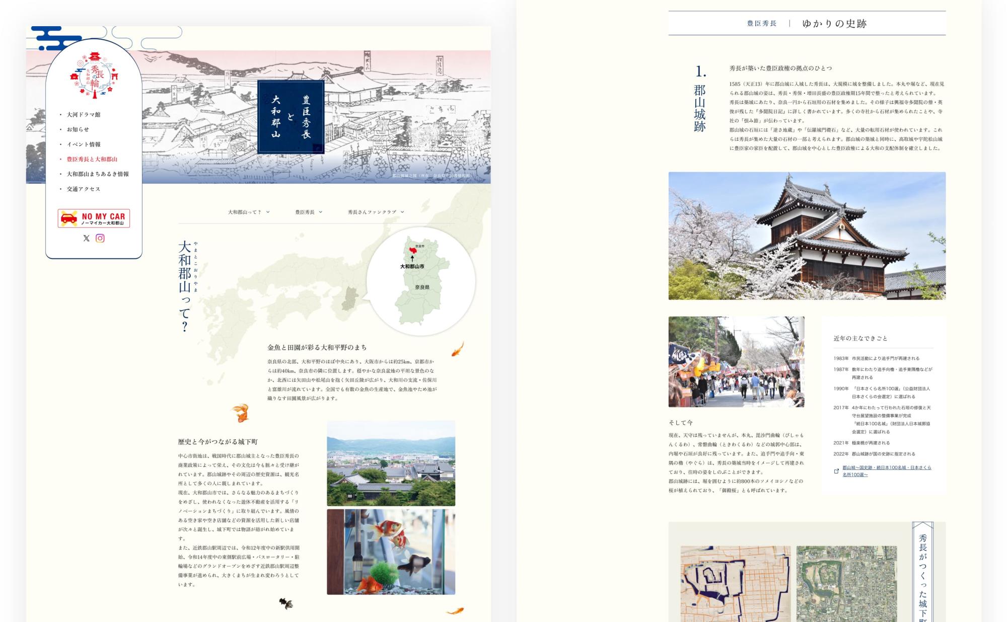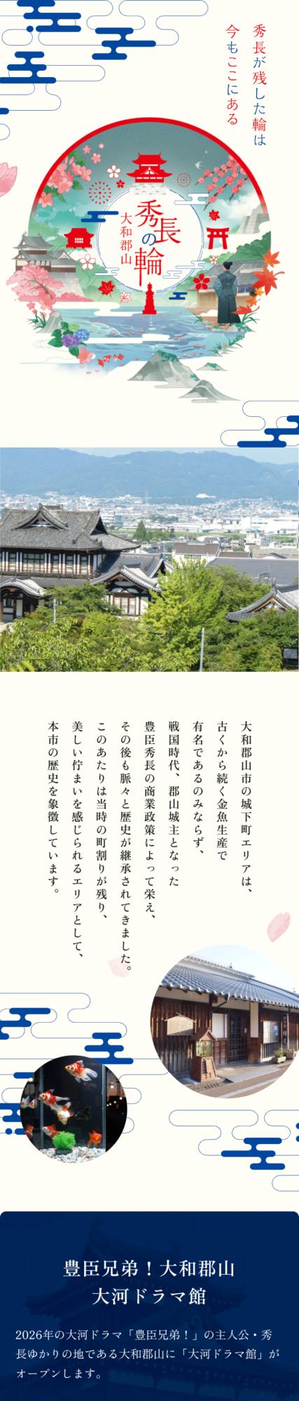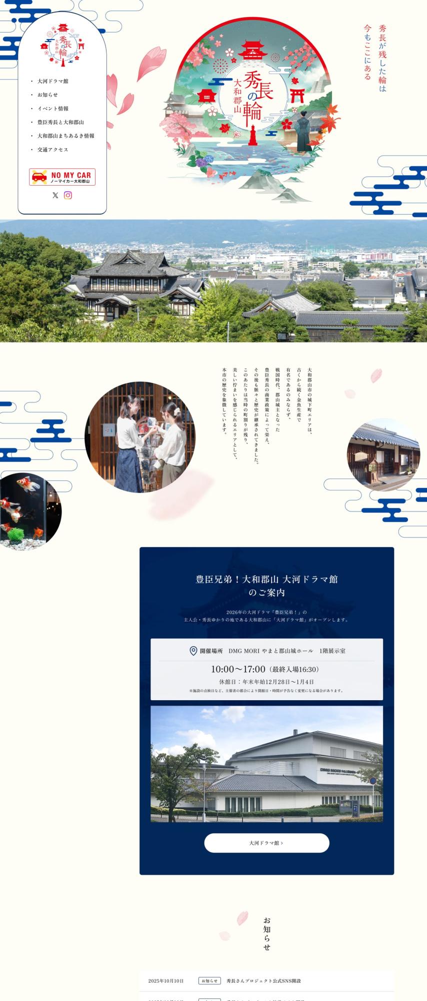 2026年1月から放送予定の大河ドラマ『豊臣兄弟!』の舞台になる奈良県大和郡山市。ノイでは、創業初期からお世話になっている広告代理店様からご依頼を受け、大和郡山市の「大河ドラマ館」開設にあわせて、2年間の期間限定サイトの構築・運営を担当。歴史情緒豊かな「城下町・大和郡山」のブランド発信を軸に、大河ドラマ館や観光イベント情報を発信できるサイト制作を行いました。