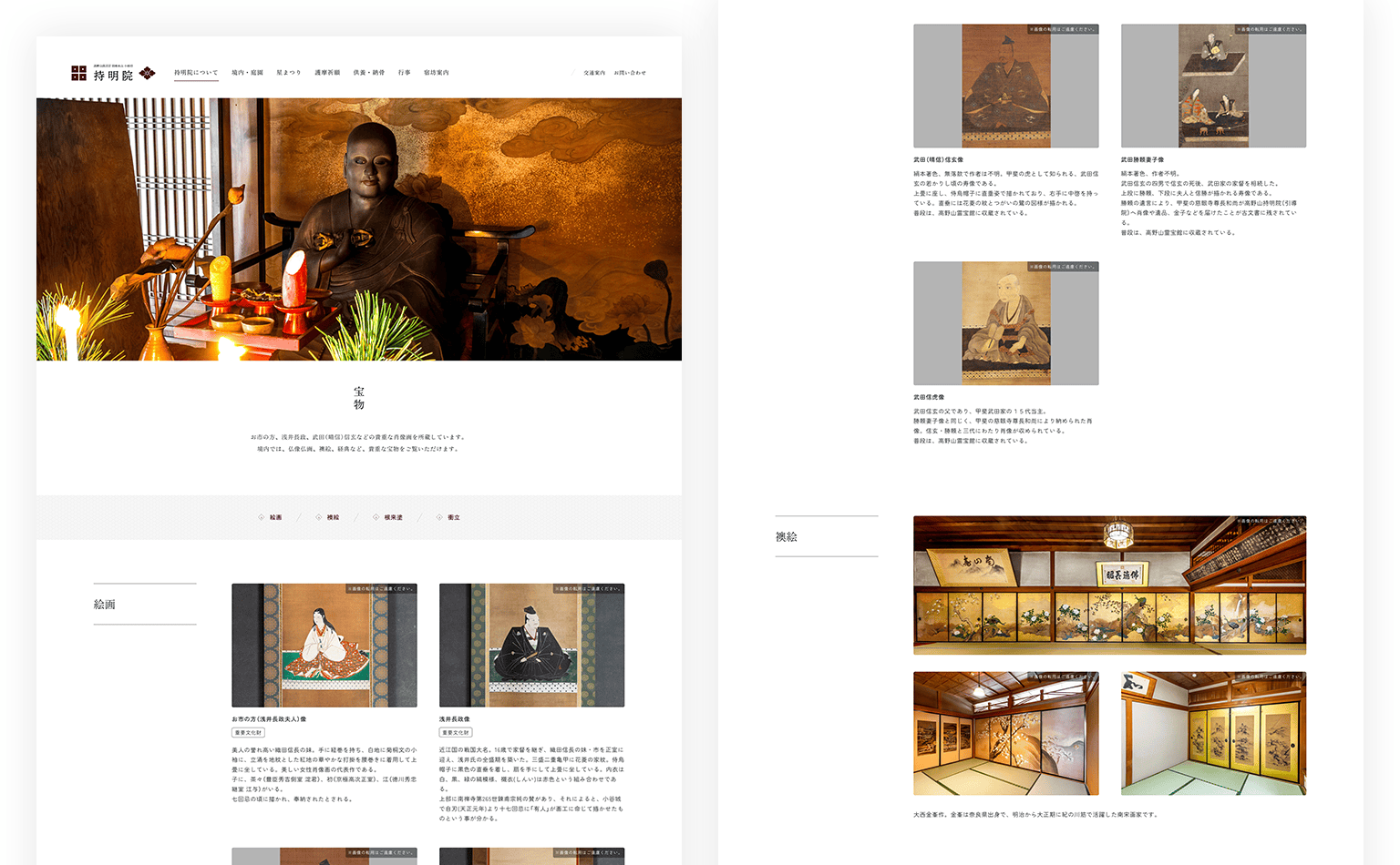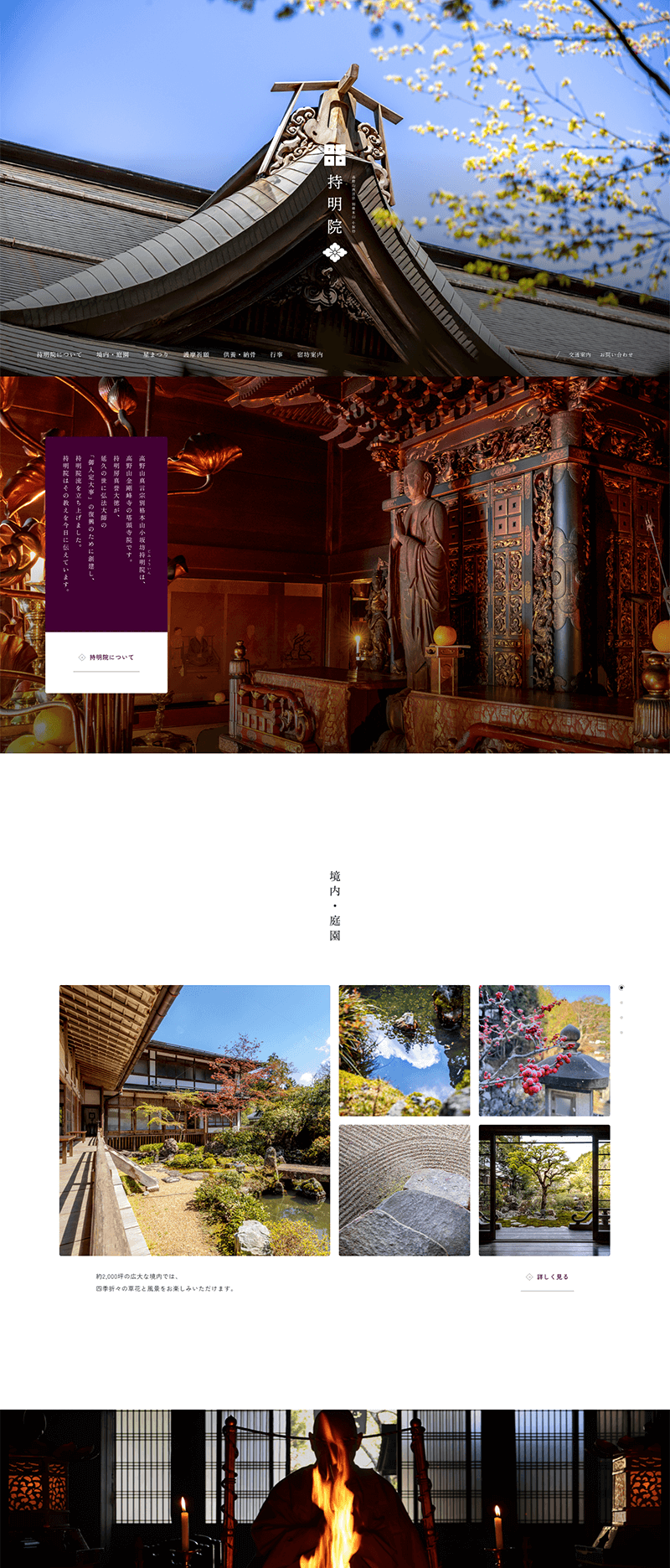 毎日磨き上げられている廊下の写真を通じて、持明院様には当たり前となっている日常的な清らかさを表現。過去に撮影された写真とあわせてサイト内で多数使用し、写真を大きく配置したデザインで、まだ訪れたことがないユーザー向けに訴求しました。