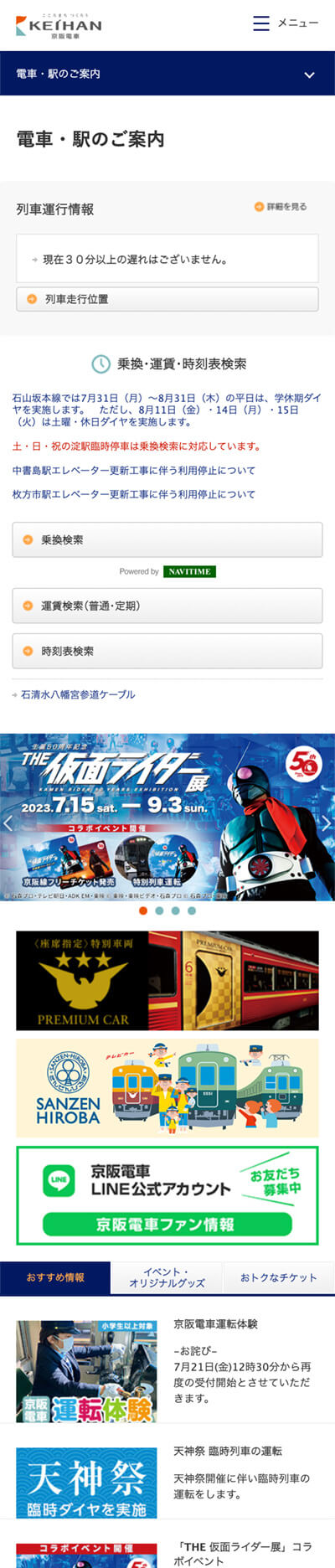 京阪電車様のサイトは鉄道利用情報とIRなどの情報を掲載しているコーポレートサイトと、京阪沿線のイベント情報やスポットなど、おでかけに役立つ情報をお届けする「おけいはん.ねっと(沿線おでかけ情報)」の2軸で運営されています。お客様の利便性に配慮したサイトにするため、リニューアルをご検討されていました。そこで、課題解決とともに、サイト全体のブランド価値の向上、CMS導入による訴求力の低下の防止を目指した提案の結果、ご指名につながりました。