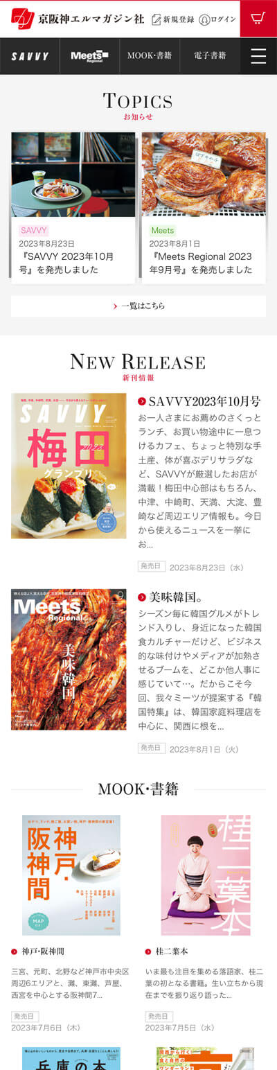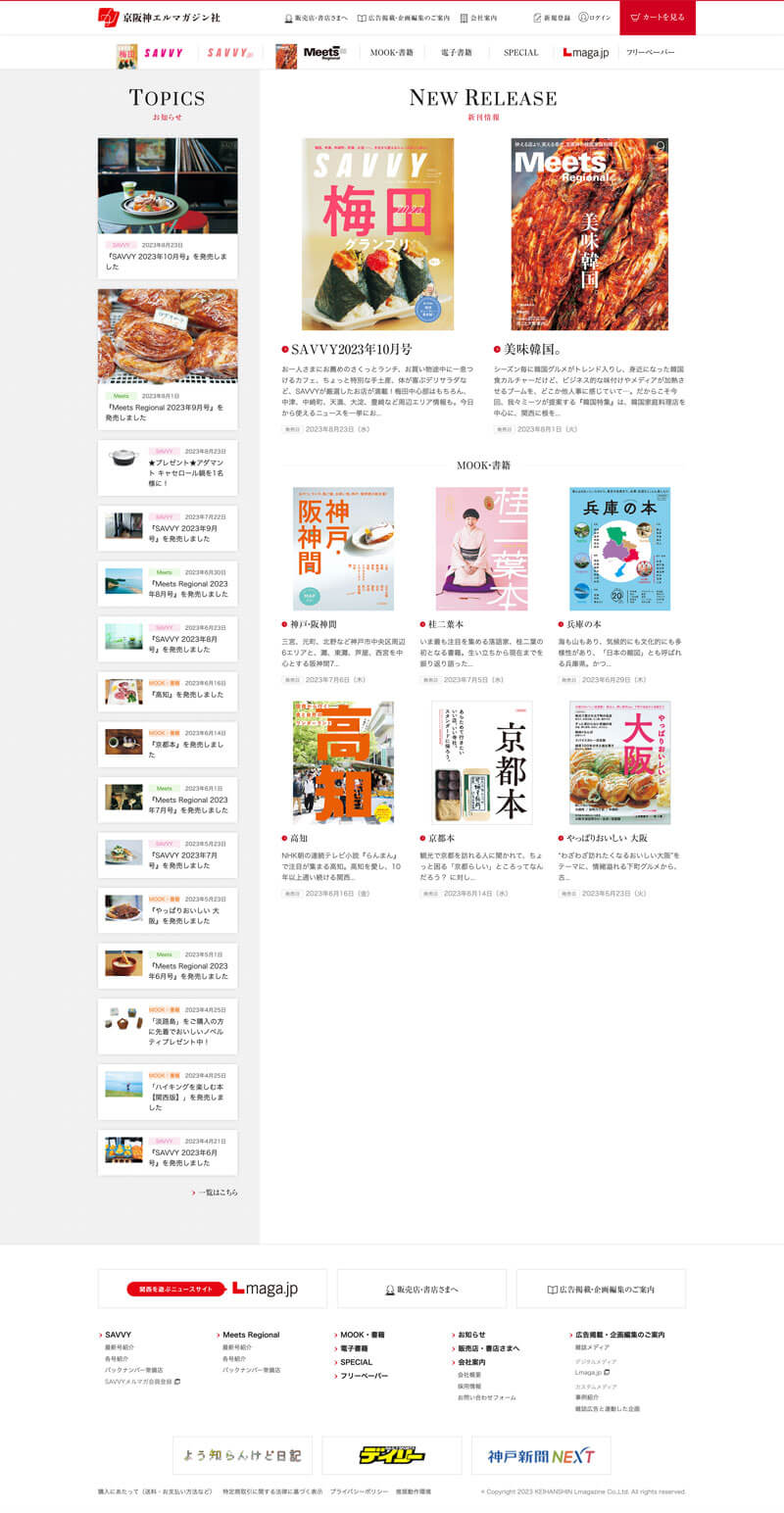 私たち自身、もともと『SAVVY』や『Meets Regional』の愛読者であり、コーポレートサイトのリニューアルをご依頼いただけたことはとても光栄でした。プロジェクトを通じて、京阪神エルマガジン社様が発行されている実に多彩なテーマのMOOKや書籍を知り、「編集」という仕事の奥深さにもふれることができました。